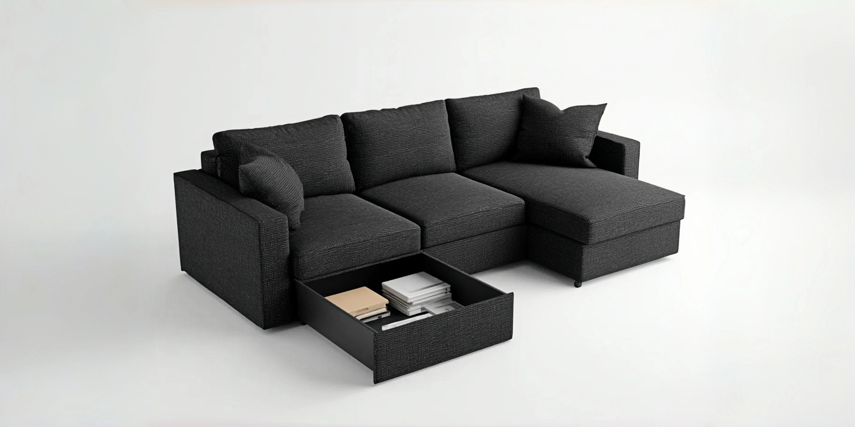 Divano angolare dal design moderno, ideale per il soggiorno. Le forme equilibrate e il profilo lineare permettono un inserimento naturale in diversi contesti abitativi.