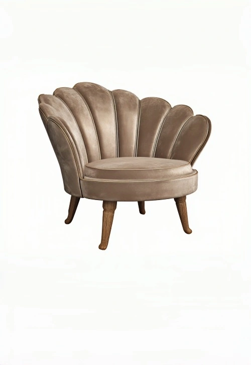 Poltrona in tessuto dal design elegante e decorativo, caratterizzata da una forma avvolgente con schienale sagomato. Ideale per valorizzare il soggiorno o una zona relax con uno stile raffinato.